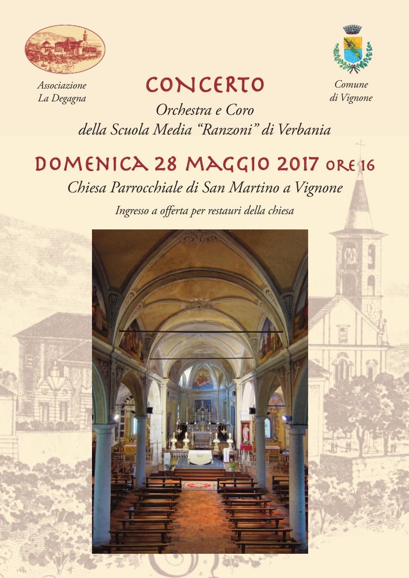 L'Associazione "La Degagna" Vi invita Domenica 28 Maggio, ore 16.00, nella Chiesa Parrocchiale di San Martino a Vignone, al Concerto organizzato dall'Orchestra e Coro della Scuola Media Ranzoni.