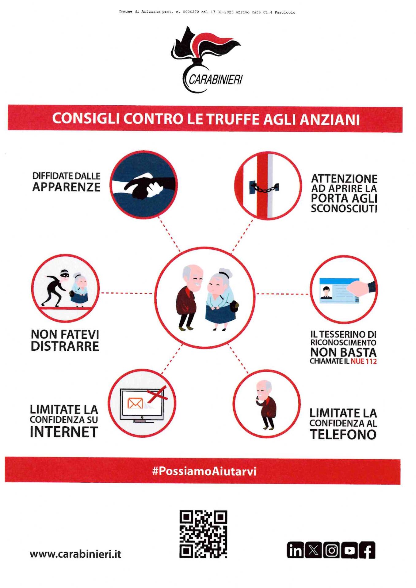 Il giorno 6 FEBBRAIO 2025, alle ore 15,00, presso la sala del Circolo "Borella IVO" di Cissano ad Arizzano si terrà un incontro con i Carabinieri sulla tematica delle truffe in danno di anziani.