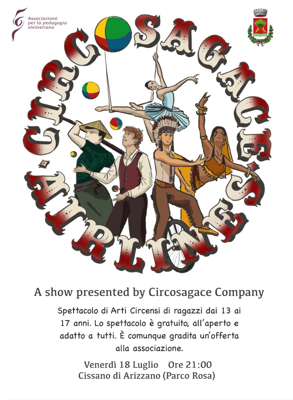 Venerdì 18 luglio alle ore 21,00, presso la struttura comunale "Parco Rosa ad Arizzano, spettacolo di arti circensi "Circus Airlines" a cura della CircoSagace Company, di ragazzi dai 13 anni ai 17 anni.