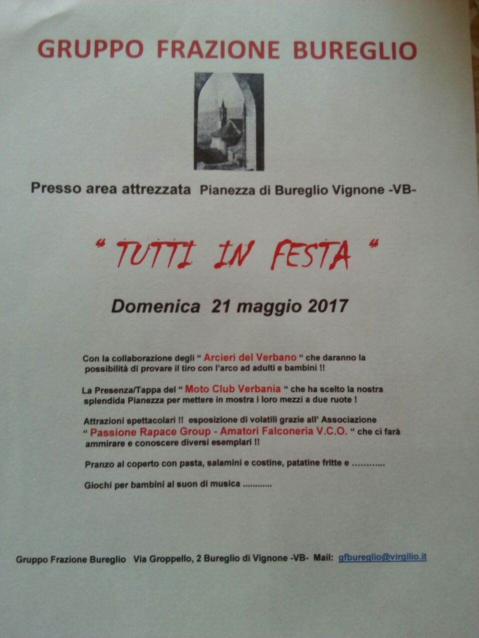 Il 21 Maggio 2017 giornata di festa organizzata dal Gruppo Frazione Bureglio in collaborazione con: