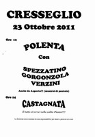 Il comitato festeggiamenti cresseglio, organizza per Domenica 23 ottobre presso la piazzetta di Cresseglio: - ore 12 polenta; ore 14 Castagnata. ... vedi locandina