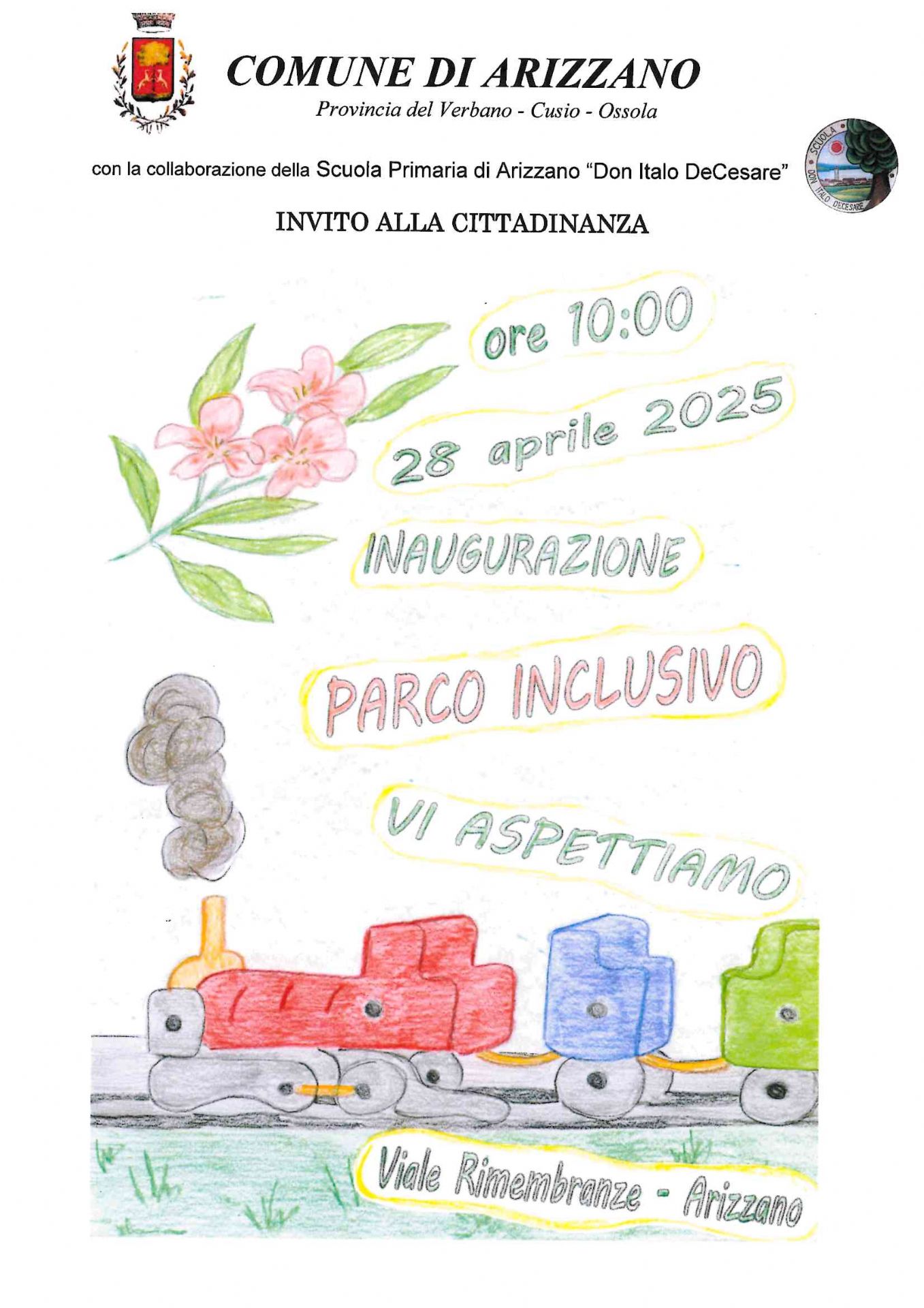 L'Amministrazione Comunale ha il piacere di invitare la cittadinanza all'inaugurazione del nuovo "Parco Inclusivo" sito in Viale Rimemebranza, che si terrà